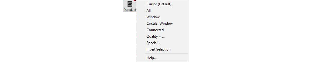 If you click on the Deselect button with the left mouse button, this automatically chooses the Deselect Cursor command. The mouse wheel can be used to zoom-in and zoom-out while using this command.