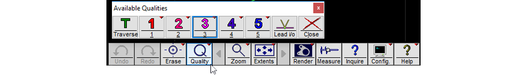 Quality options control the piercing of a material and the nozzle cutting speed. Quality affects how quickly the abrasive jet head moves as it cuts a part. The slower it moves, the higher the cut quality. At the highest quality (a Quality of 5), the abrasive jet head moves its slowest.