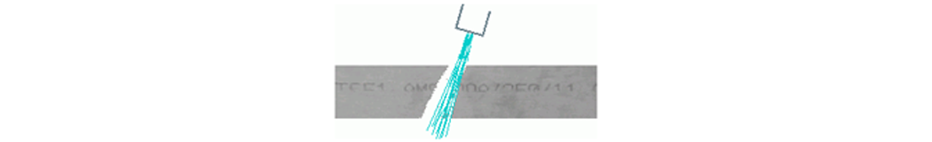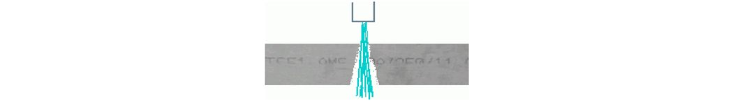 During a dynamic pierce, the nozzle and abrasive are turned on, and the nozzle begins to slowly move. As the nozzle moves, the material is pierced.