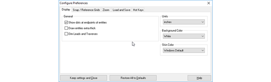An entity is always marked at each end using a point. Entity points can be seen by selecting Show dots at endpoints of entities from the Configure Preferences drop-down window in LAYOUT: